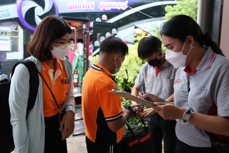 สวัสดีจ้า วันนี้เราจะไปท่องเที่ยวเขาใหญ่กันค่ะ เมื่อทีมงานของเราพร้อมแล้วก็ออกเดินทางไปยังจุดนัดหมาย เมื่อมาถึงทีมงานของเราก็ตั้งโต๊ะลงทะเบียนและติดแท็กให้กับพี่ๆทุกท่าน มีบริการกาแฟร้อนๆและขนมด้วยค่ะ ถ้ามาพร้อมแล้วเราออกเดินทางกันดีกว่า