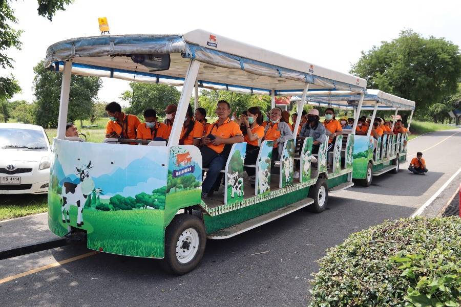 จุดแรกของทัวร์เขาใหญ่ที่เราจะแวะ คือฟาร์มโคนมเดนมาร์ค นำทุกท่านเรียนรู้เรื่องโคนมและชมบรรยากาศฟาร์มโดยการนั่งรถราง ที่นี่มีผลิตภัณฑ์โคนมไทย-เดนมาร์คจำหน่าย กิจกรรมภายในฟาร์ม มีการชมฟาร์มเชิงเกษตร สาธิตการทำปุ๋ยจากนมวัว มีการรีดนมวัว ป้อนนมวัว ชมการแสดงของม้าแสนน่ารัก และให้อาหารปลาด้วยจ้า